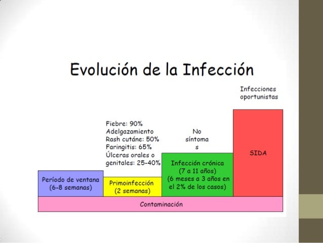 Al debilitarlas contra la enfermedad el VIH haceque el organismo sea vulnerable a una serie de infeccionesy cnceres algunas de las cules ponen en peligro la vidaPuede transmitirse de una persona a otra a travs de tresvas. VIH - Infeccin inicial Unas semanas despus de ingresar al cuerpo el VIH desencadena sntomas similares a los de la gripe y en algunos. Nadie desarrolla el SIDA rpidamente.