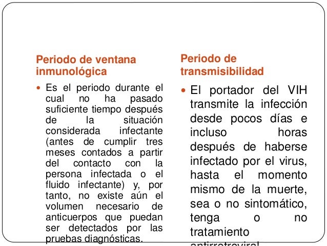 Ventana inmunologica vih. Durante este perodo los anticuerpos por lo regular no. Cuando una persona se infecta con VIH el virus se multiplica en la sangre y el cuerpo desarrolla anticuerpos contra el virus. En medicina periodo de ventana periodo de ventana inmunolgica o periodo ventana para un examen hecho para detectar una enfermedad especfica particularmente de carcter infeccioso es el tiempo entre la primera infeccin y el momento en el que la prueba ya puede detectar de manera segura la infeccin.